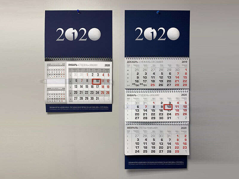 An alternative way to attach calendars and other printing products is to use 3M Command Velcro. Now you don't have to drill into the wall to hang the calendar. 3M Command fasteners consist of a pair of strips with an adhesive layer, one of which is glued to the wall, the second to an object, for example, a calendar "cap". With a light touch, the strips are fastened together and securely hold the calendar on the wall. The set includes 3 pairs of strips, one pair can withstand the weight of an object up to 1.35 kg.
