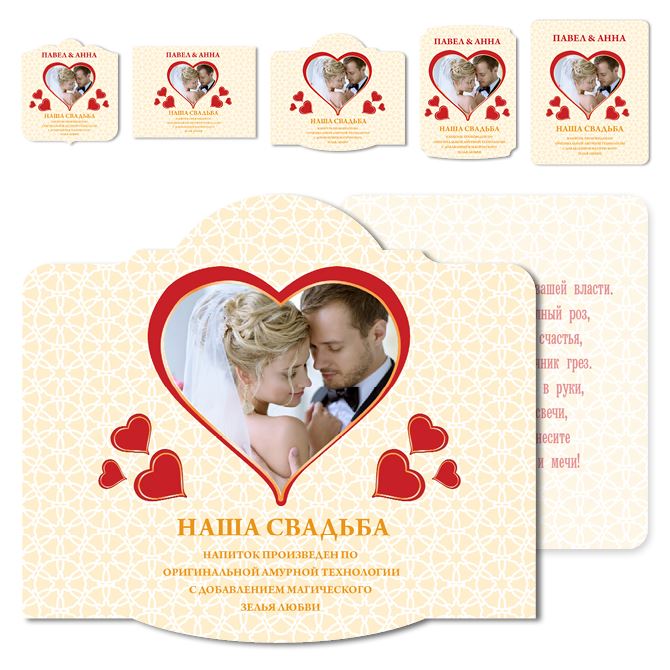 Self-adhesive stickers and labels on bottles Vintage hearts