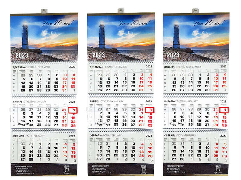 The quarterly calendar is a convenient wall calendar in which three months are presented before your eyes at once. We print quarterly calendars with a photo or logo from an online editor or your layout. Printing from 1 piece urgently or 24 hours. Promotional offer for the quarterly calendar on 1 spring (for urgency of 48 hours).