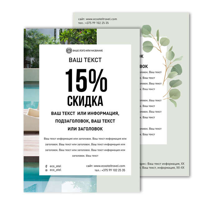 The flyers are colored Eucalyptus leaves on a green background
