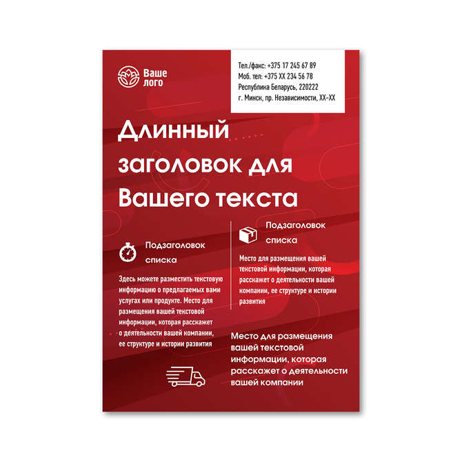 Prices are indicated for printing from a ready-made layout. Delivery in Belarus from 75 rubles for free.