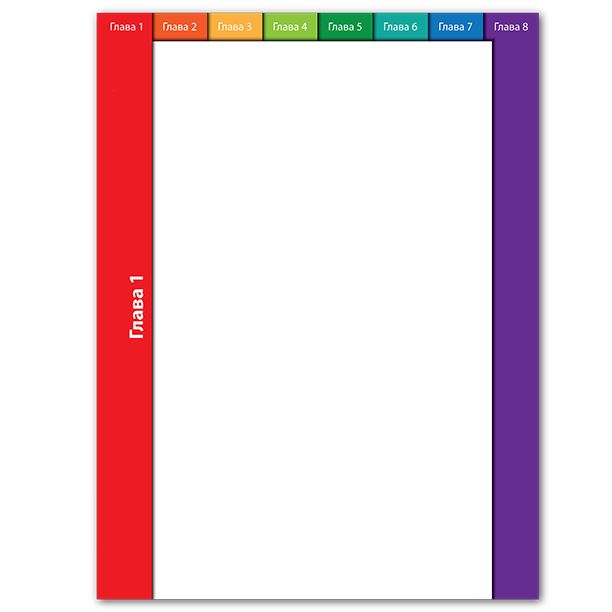 Sheets of dividers for documents are usually made of the same size as the documents themselves, or slightly larger. The most common size is slightly larger than A4 format - 235x297mm. At the same time, other sizes are also possible. You can order vertical or horizontal dividers. Use different colors to highlight each part, place the content of the section on the divider, and the short name of the section on the strip labels.