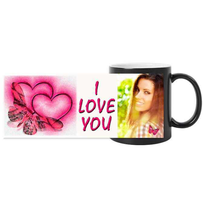 Chameleon mugs Heart and butterfly.