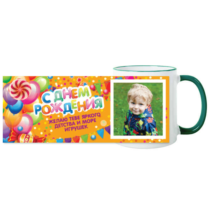 Chameleon mugs Happy birthday Lollipops, balloons, flags.