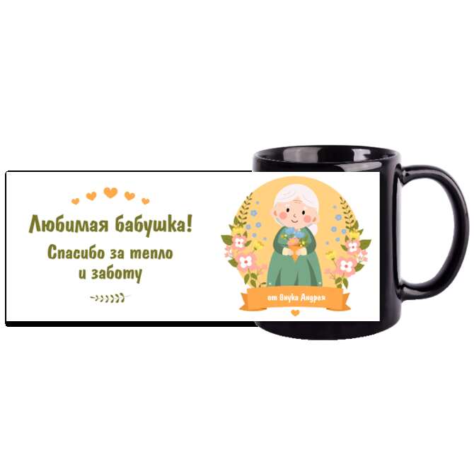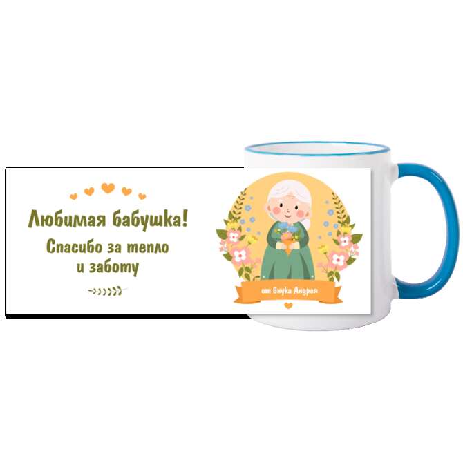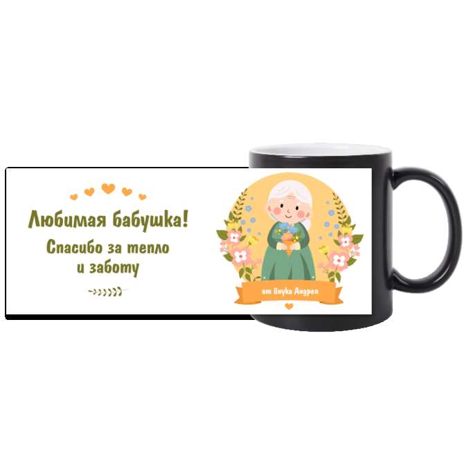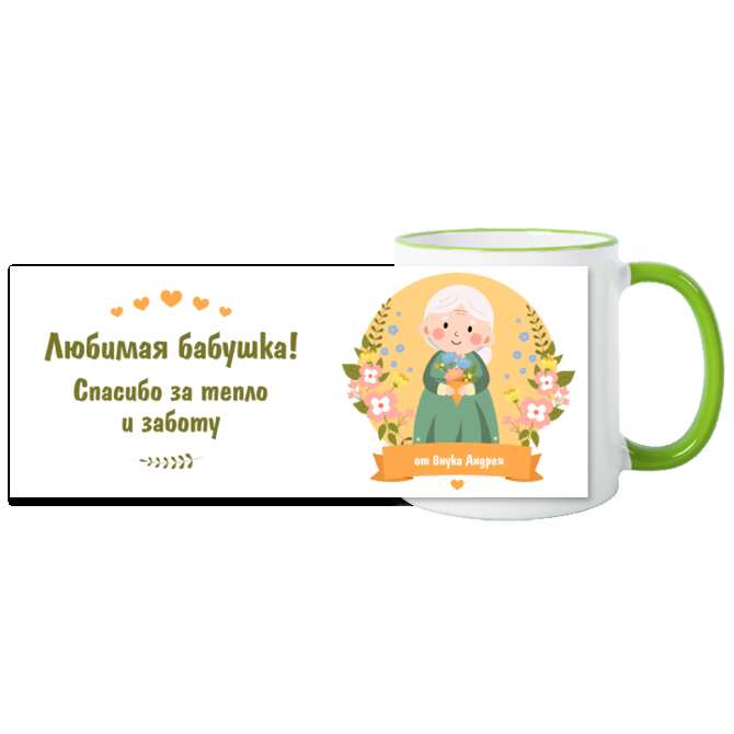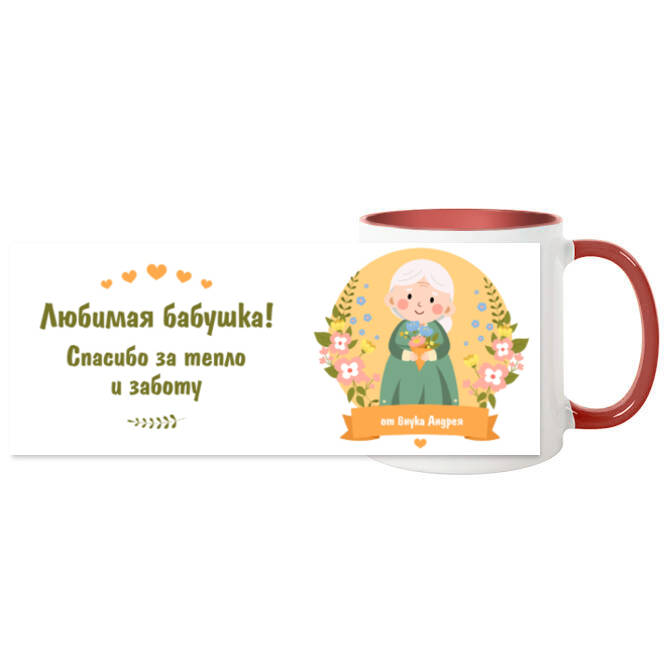 Кружки цветные Grandmother's figure on a background of flowers