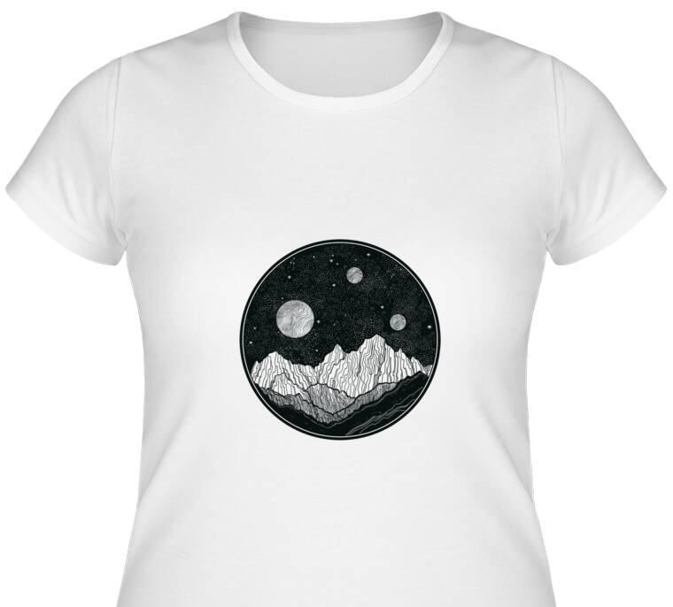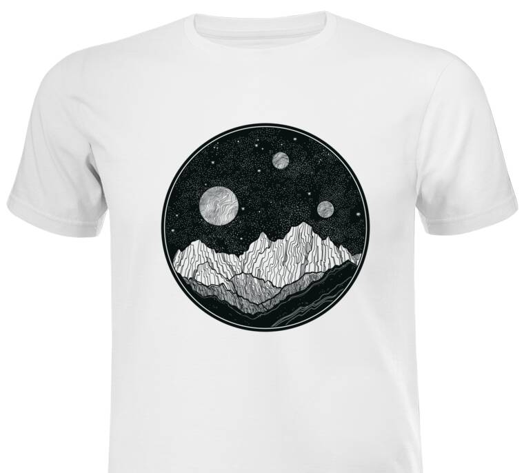 T-shirts, printed T-shirts Night landscape in the style of engravings