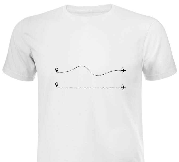 T-shirts, white T-shirts The path of the aircraft with a dotted line