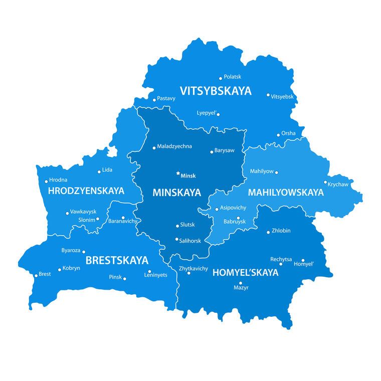 Paintings on photographic paper The map of Belarus in English