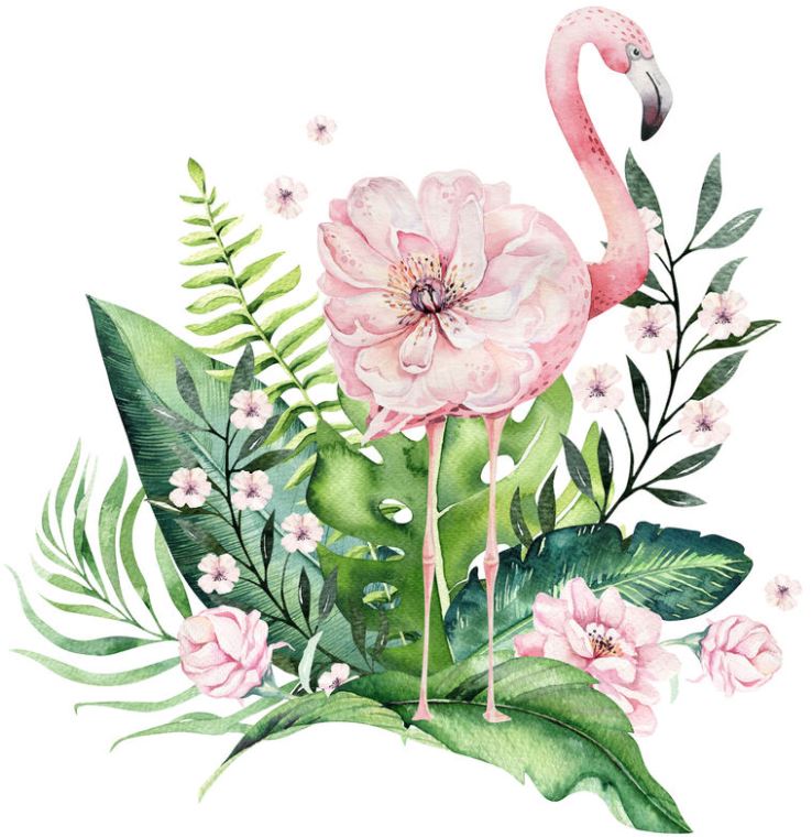 Paintings on photographic paper Flamingos and tropical leaves