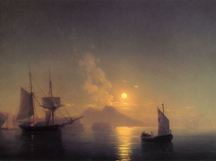 Paintings on photographic paper Bay of Naples on a moonlit night