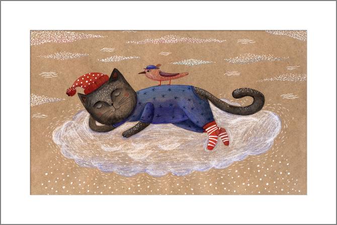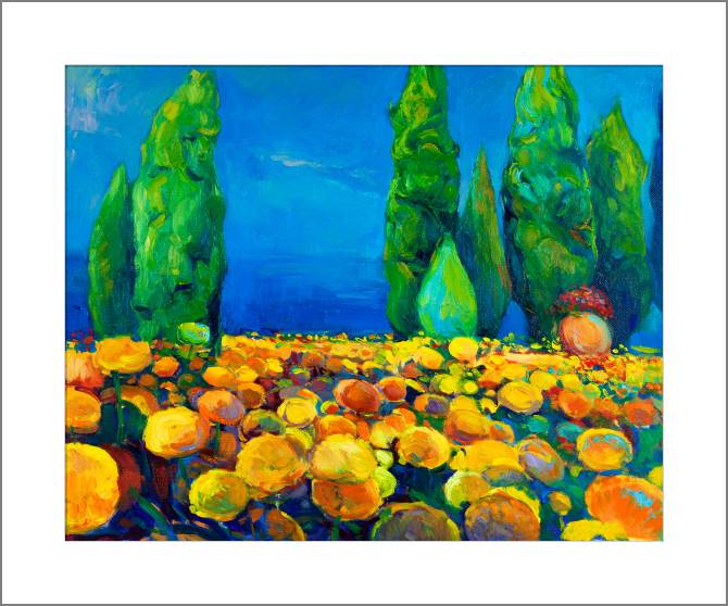 The image printed on paper is framed in a wide frame of art cardboard. Passepartout focuses on the painting, gives it additional expressiveness.