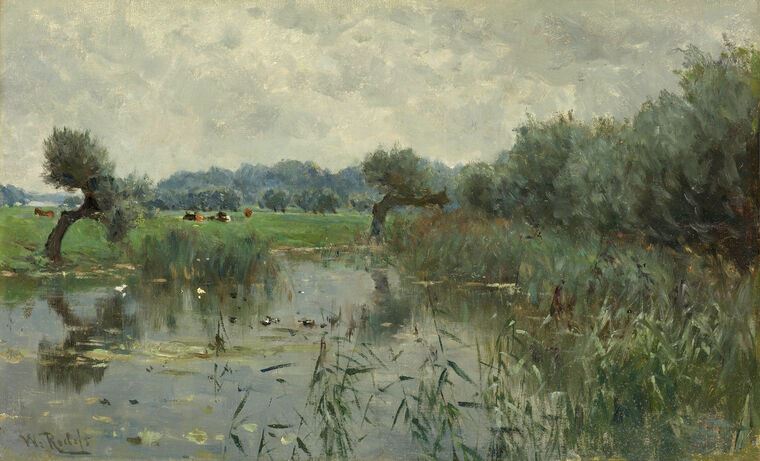 Framed and baguette paintings Meadows on the river IJssel (Willem Roelofs)