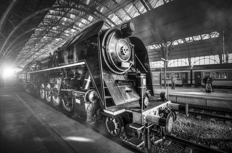 Paintings on canvas Steam locomotive black & white photo