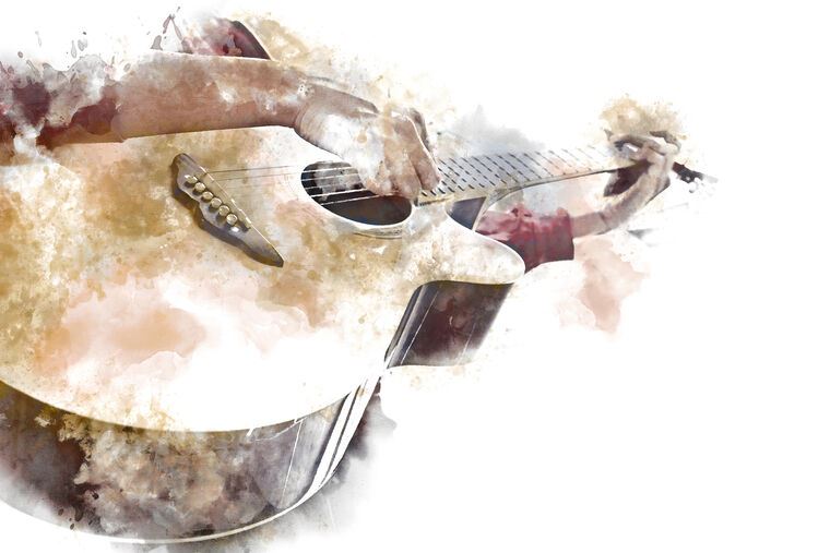 Reproductions of paintings Guitar on white background