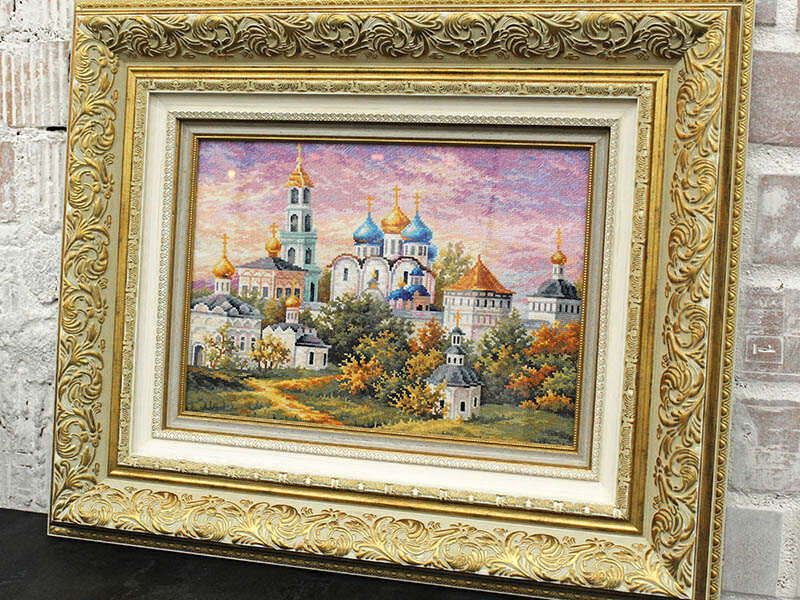 - Стоимость оформления вышивки в раму рассчитывается дополнительно исходя из стоимости выбранного багета, паспарту, стекла.
