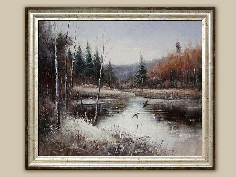 Классические натюрморты и пейзажи превосходно смотрятся в резных рамках «под золото» и «под серебро». Работы современного искусства, живопись выгоднее всего оформлять в строгие узкие профили ярких тонов или в металлическую рамку.