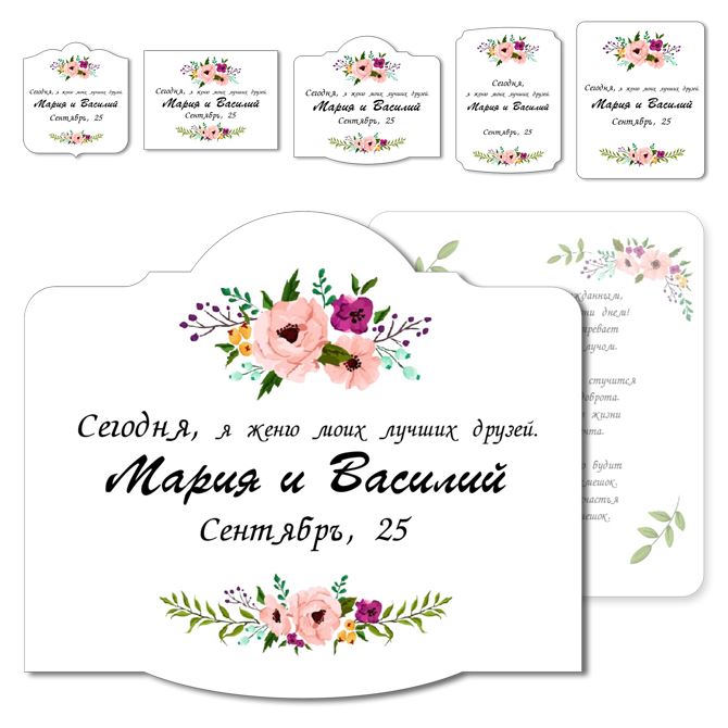 Стандартный шаблон этикеток вы на бутылку состоит из трех наклеек: