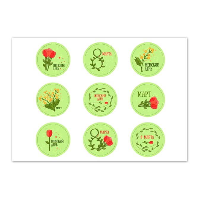 Наклейки, стикеры на ноутбук 8 марта Зелень