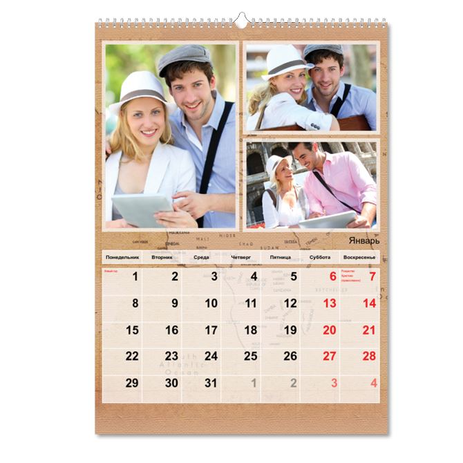 Каждый месяц расположен на одной из трех календарных сеток. Можно видеть не только текущий, предыдущий и следующий месяцы, но, например, текущий и два следующих. Внизу каждой календарной сетки размещено поле для рекламы.