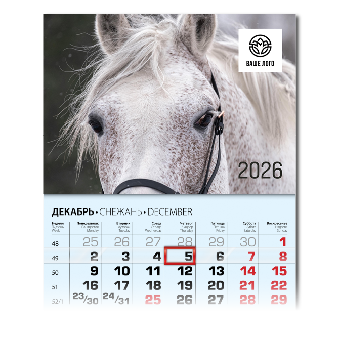 Каждый месяц расположен на одной из трех календарных сеток. Можно видеть не только текущий, предыдущий и следующий месяцы, но, например, текущий и два следующих. Внизу каждой календарной сетки размещено поле для рекламы.