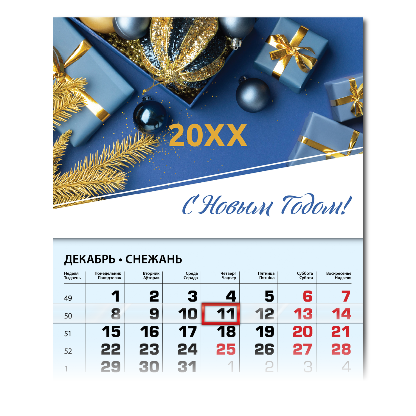Каждый месяц расположен на одной из трех календарных сеток. Можно видеть не только текущий, предыдущий и следующий месяцы, но, например, текущий и два следующих. Внизу каждой календарной сетки размещено поле для рекламы.