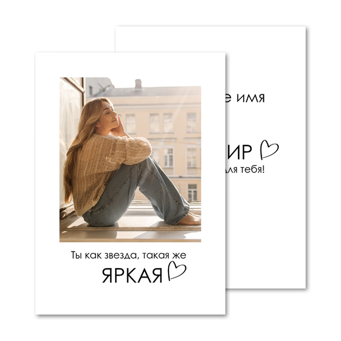 Заказали двусторонние открытки. Дизайн: имитация аттестата о среднем образовании. Качество отличное! Очень довольны.