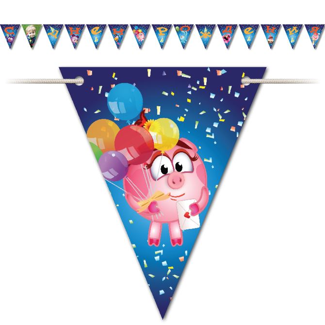 В комплект гирлянды входит 15 треугольных флажков 140х170 мм, шнурок 2500 мм. Длина гирлянды с флажками - около 2250 мм. Вы можете добавить до 30 флажков в вашу гирлянду. Печать флажков выполняется на полуматовой премиум бумаге плотностью 160 г/кв. м.