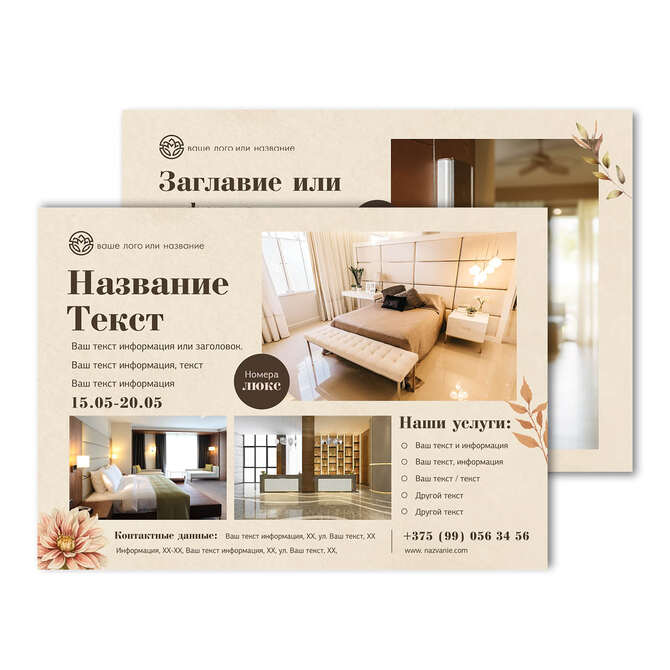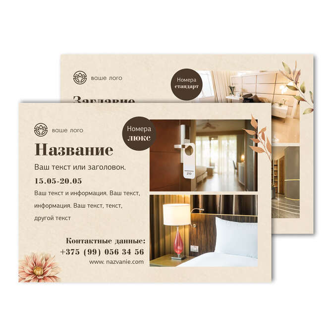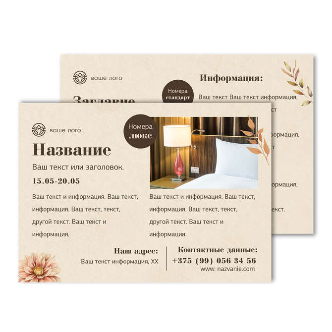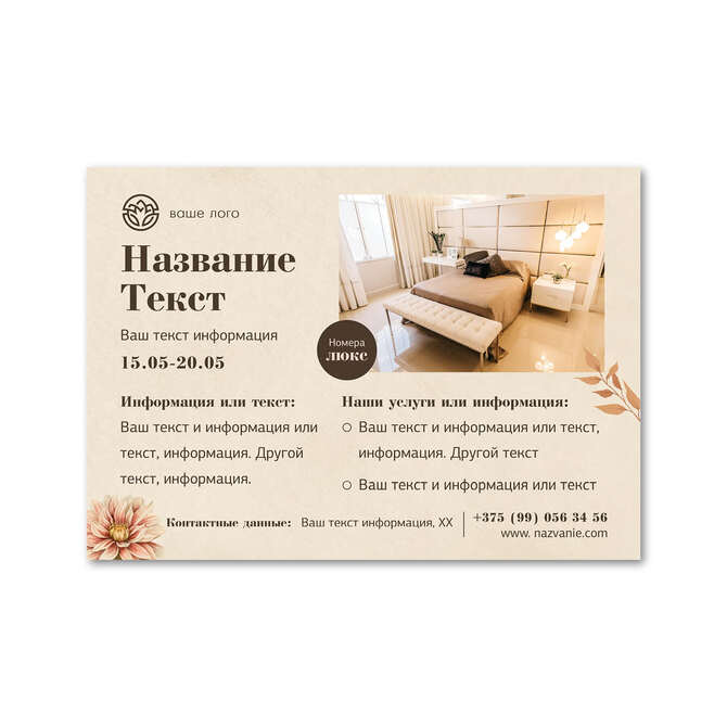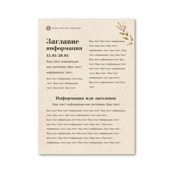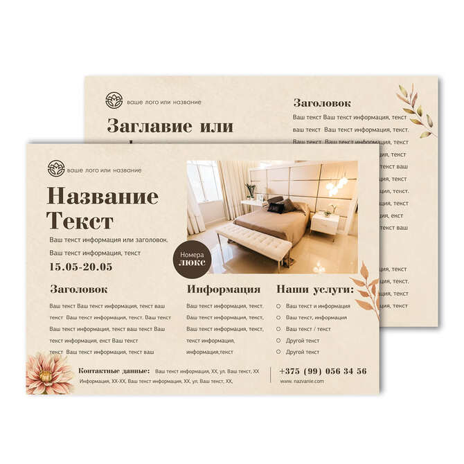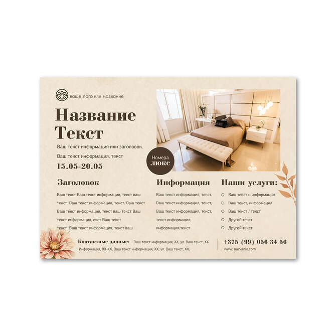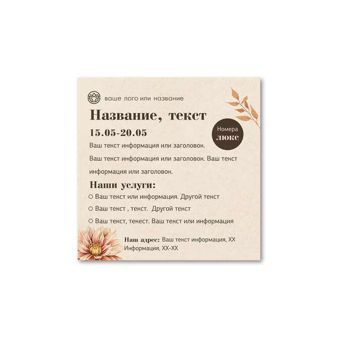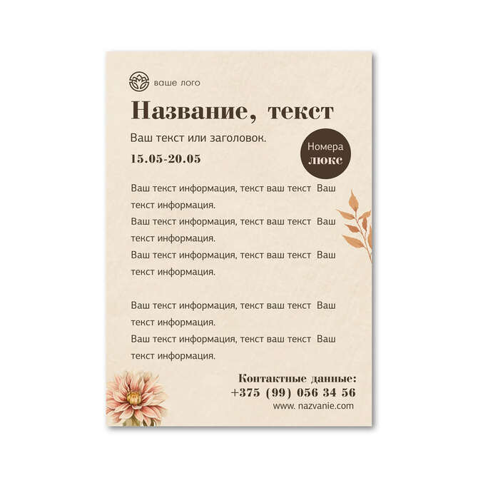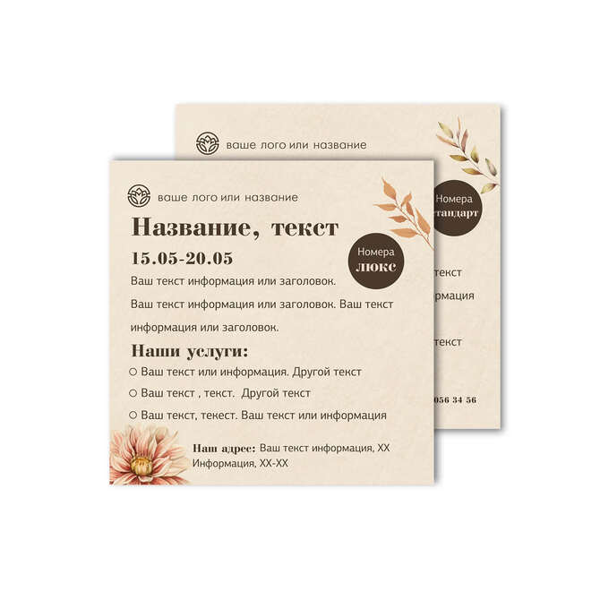 Флаеры односторонние Осенние цветы на бежевом текстурном фоне