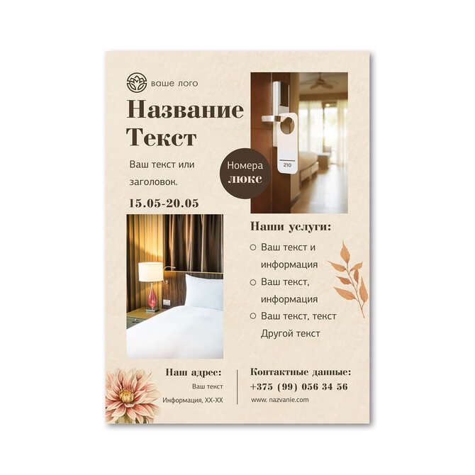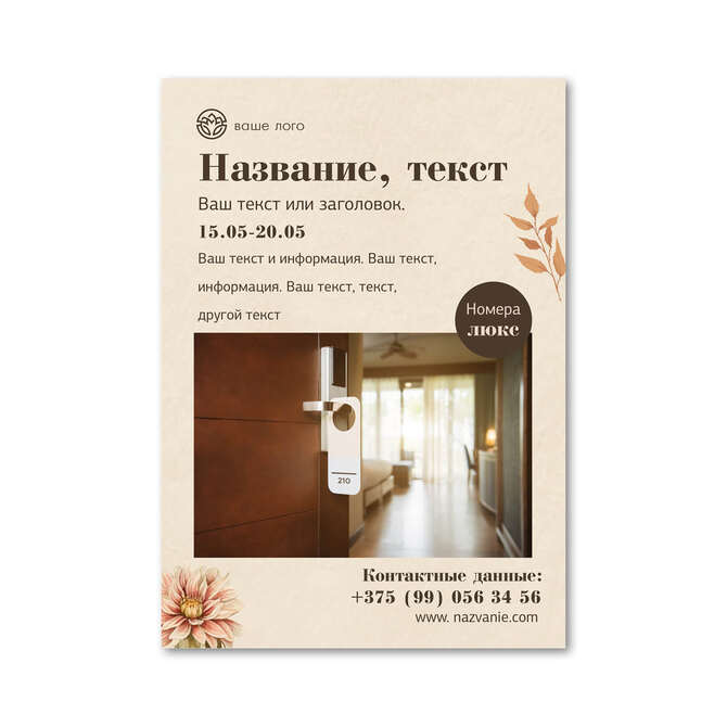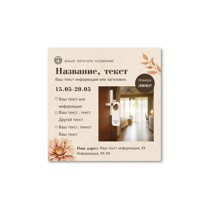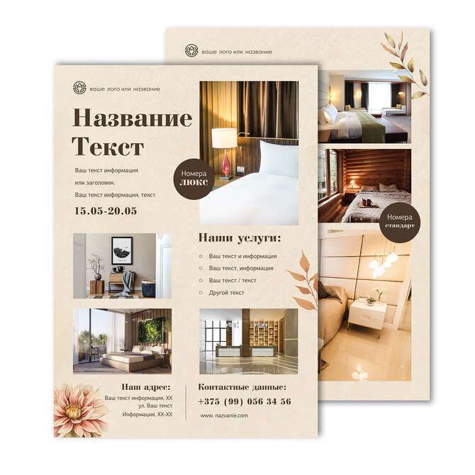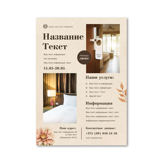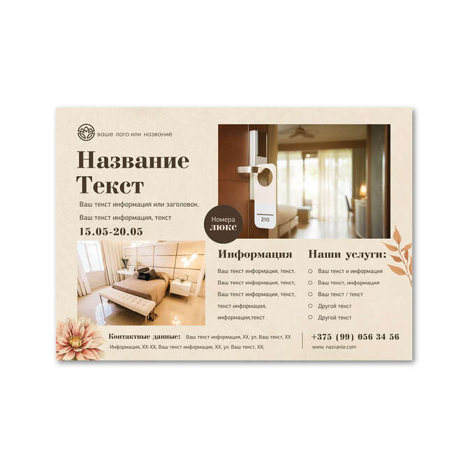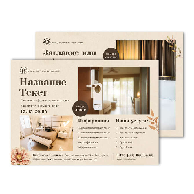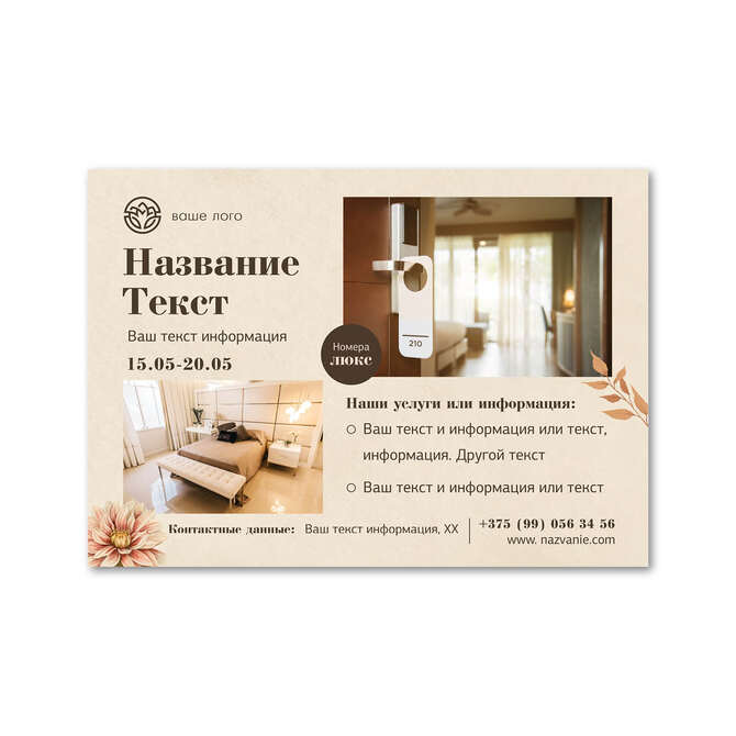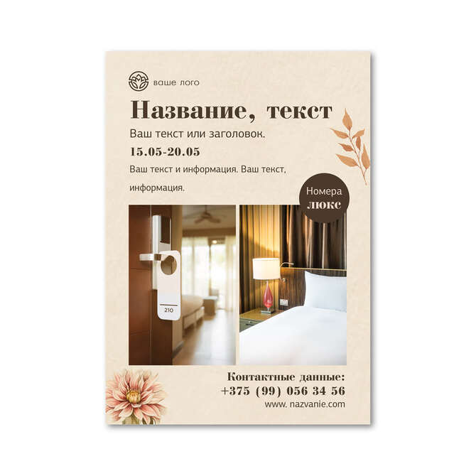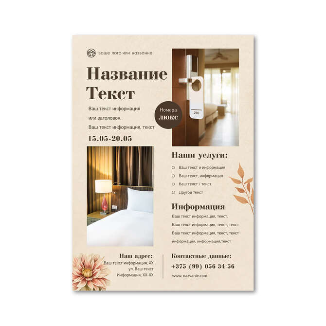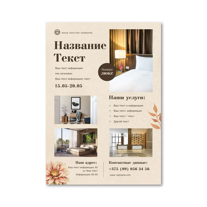 Флаеры односторонние Осенние цветы на бежевом текстурном фоне