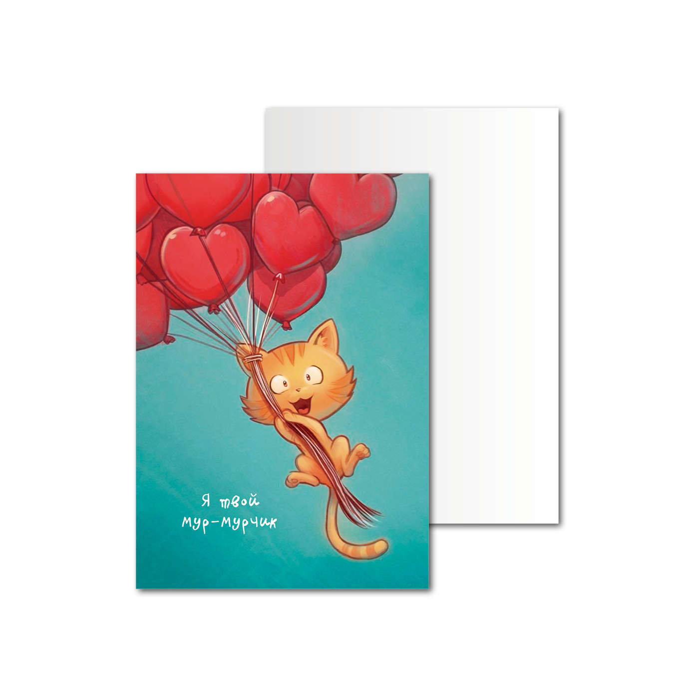 Открытки односторонние Кошка с шариками