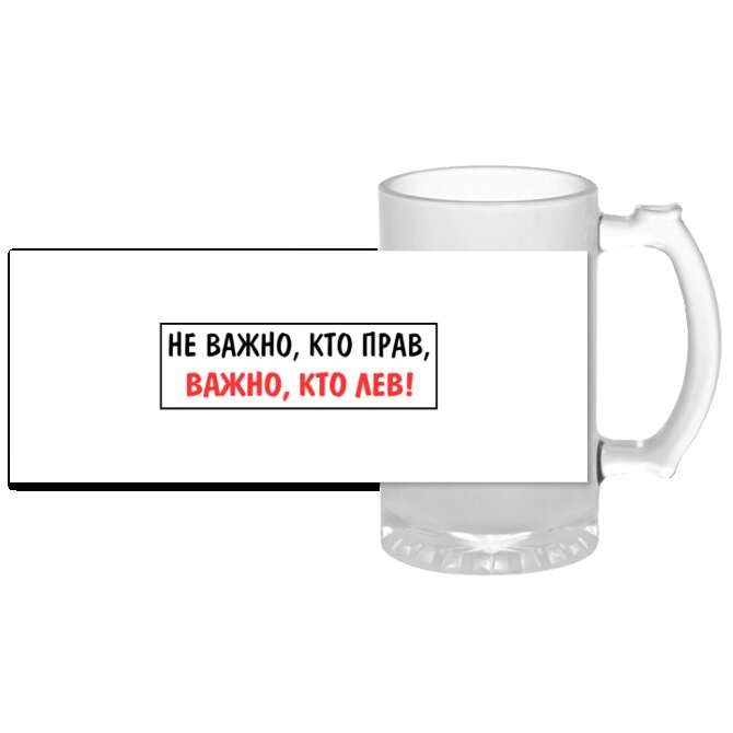 Стеклянный бокал-кружка для пива и других напитков. Матовое ("замороженное") стекло. Объем кружки - 500 мл. Размер нанесения - 200х80 мм. Изображение по умолчанию наносится по центру кружки, однако может быть смещено вверх либо вниз.