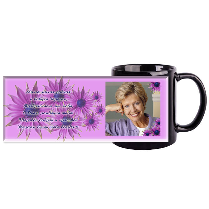 Кружки черные Сиреневые хризантемы
