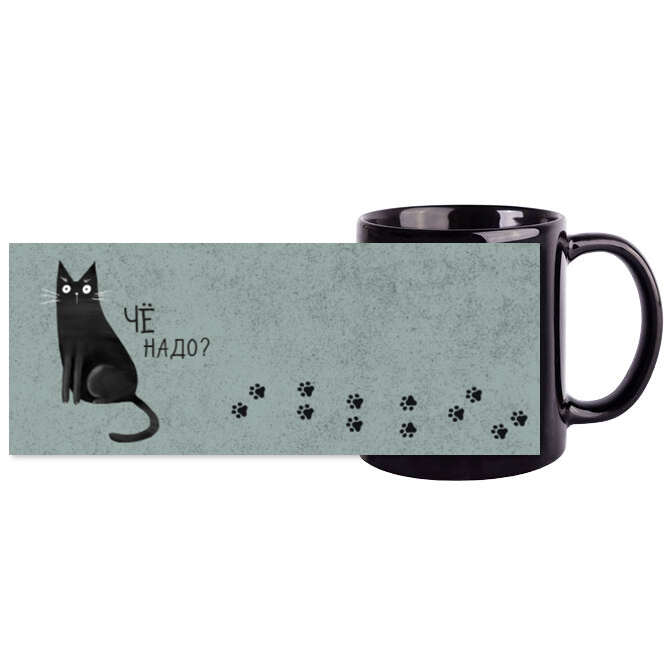 Кружки черные Удивленная черная кошка Чё надо?