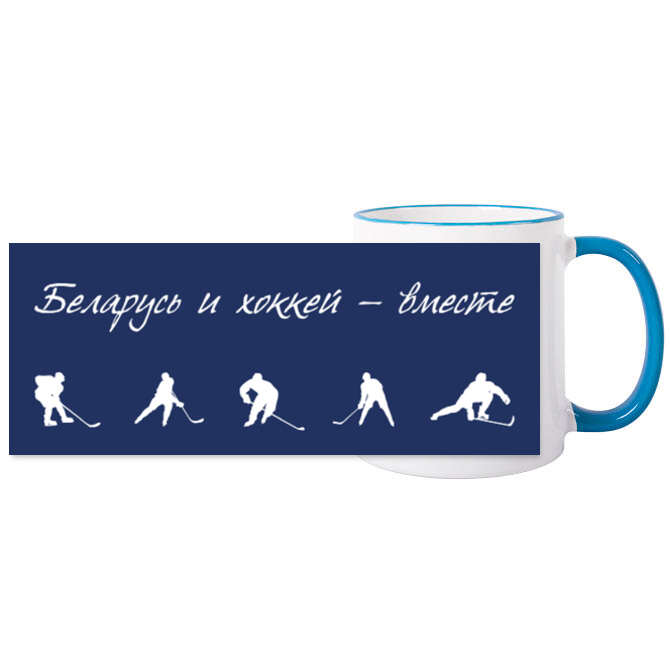 Кружки хамелеон Хоккеисты на синем фоне, белорусский хоккей