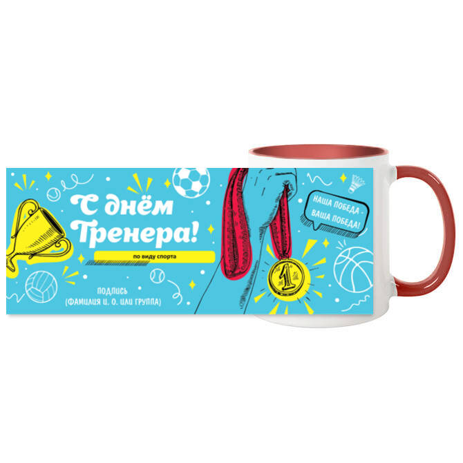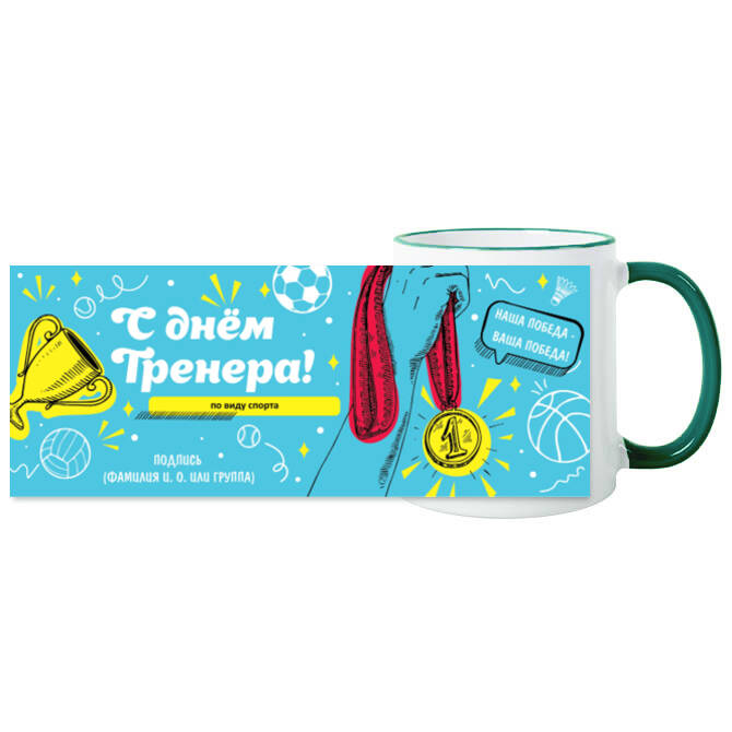 Кружки цветные С днем тренера - бирюзовый фон