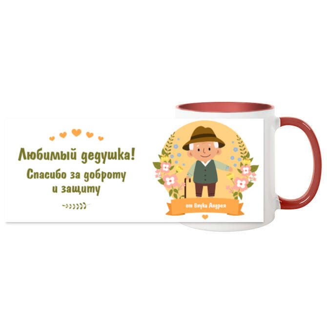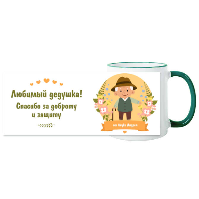 Кружки цветные Любимому дедушке, цветочная иллюстрация
