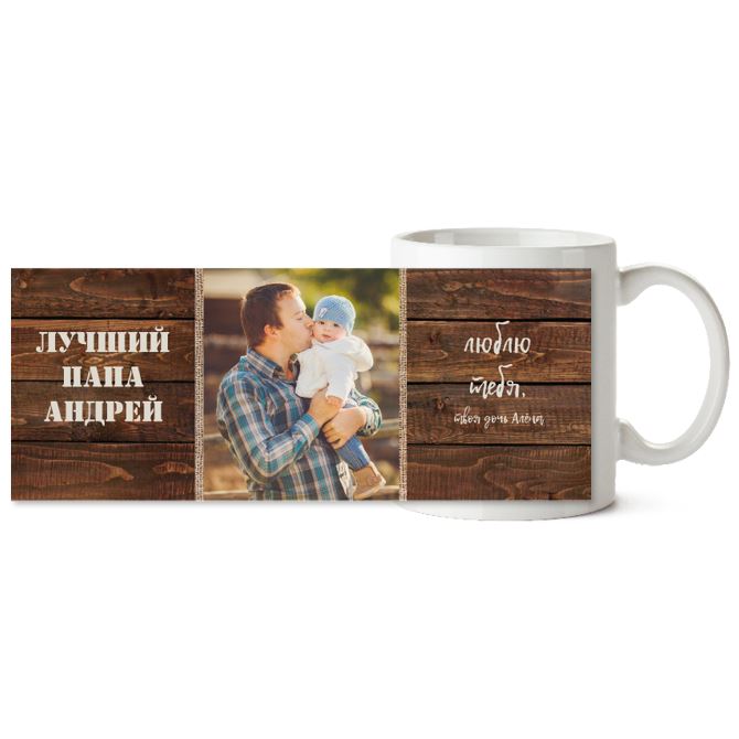 Кружки керамические Фото на деревянном фоне