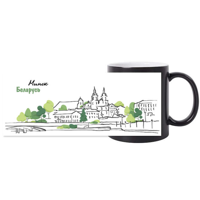 Кружки керамические Минск Верхний город эскизная иллюстрация акварель