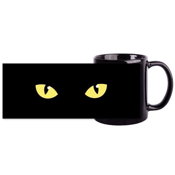 Керамическая черная кружка с окном для нанесения картинки. Размер изображения 190х76 мм, размер изображения с черной дозаливкой 220х90 мм.