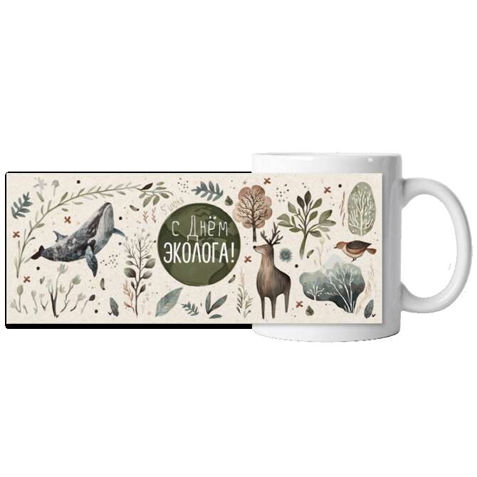 Печать на кружках белых керамических с изображениями животных