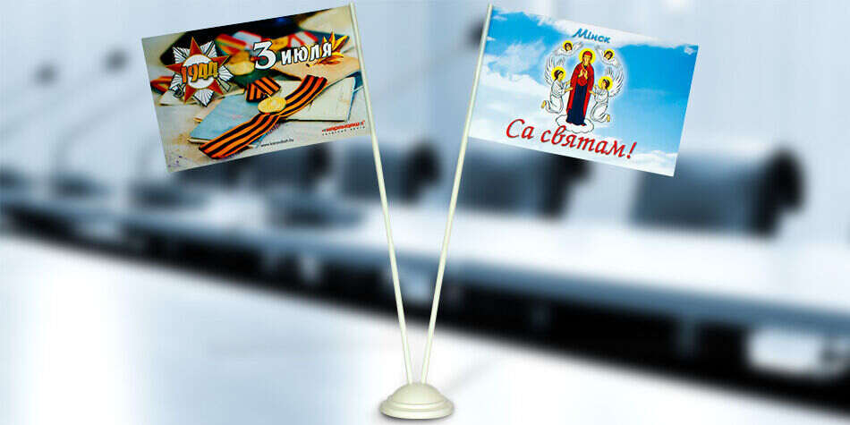 Печать флажков на тему Беларусь, с видами, национальным орнаментом и символикой Республики Беларусь
