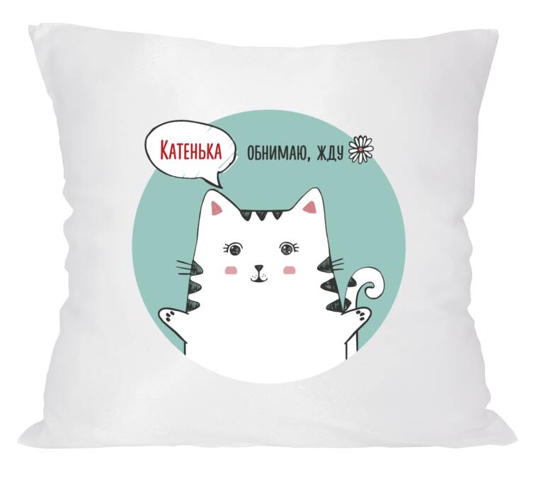 Подушки с фото, логотипом авто, надписью на заказ белые