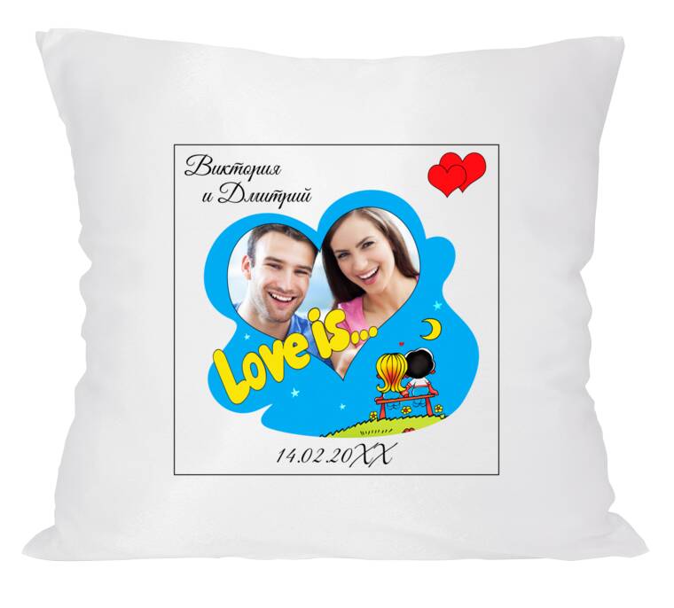 Необычный уютный подарок, на котором вы можете написать свое поздравление или разместить фото. Подушка подойдет для признания в любви на 14 февраля, это также отличный подарок на день Рождения и другие праздники.