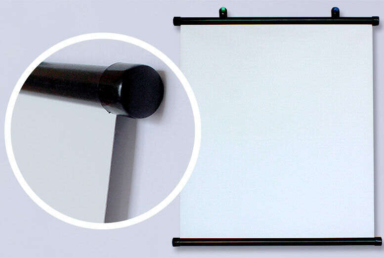 Пластиковый круглый профиль черного цвета с заглушками по краям и ушками для подвеса. Рейка профиля закрепляется на ткани сверху и снизу, удерживая баннер в растянутом положении.
