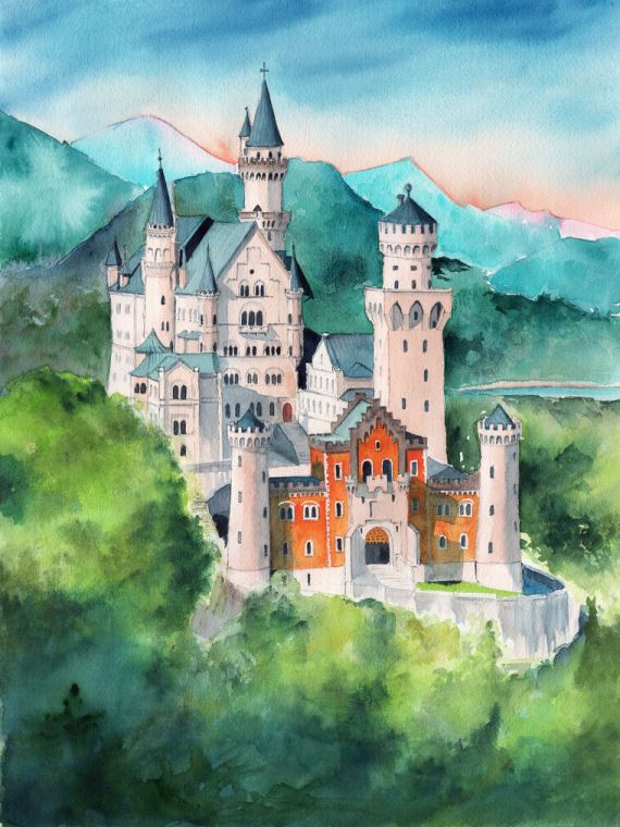 Купить и печать на заказ Картины на пластике, пеноркартоне Замок Нойшванштайн