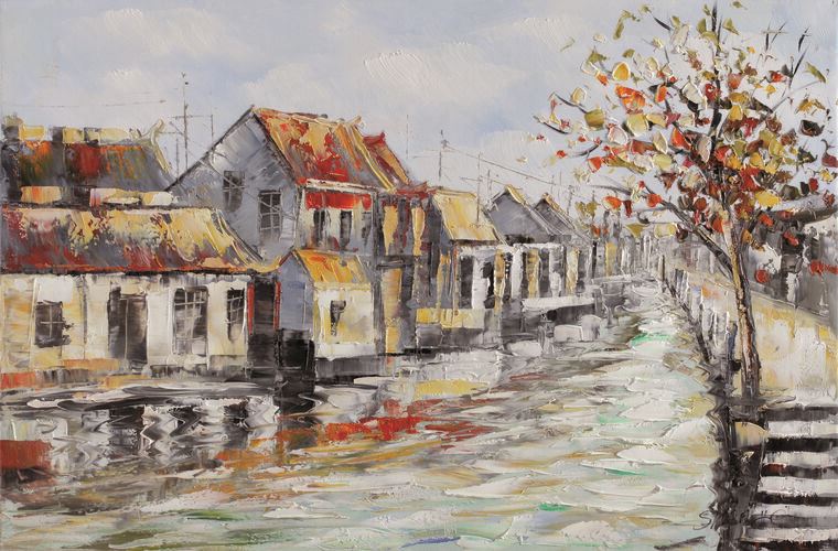 Купить и печать на заказ Картины на подрамнике Река в городе