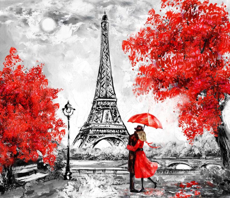 Купить и печать на заказ Картины на подрамнике Пара под зонтиком в Париже