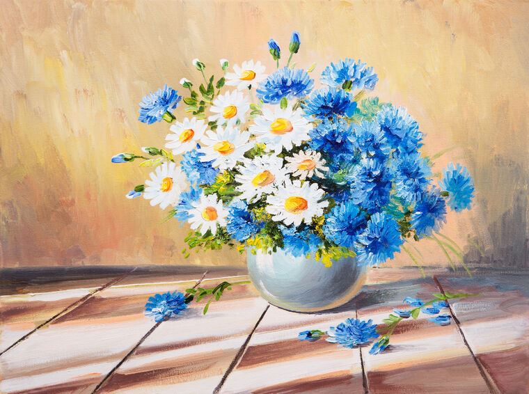 Купить и печать на заказ Картины на подрамнике Солнечный натюрморт с ромашками