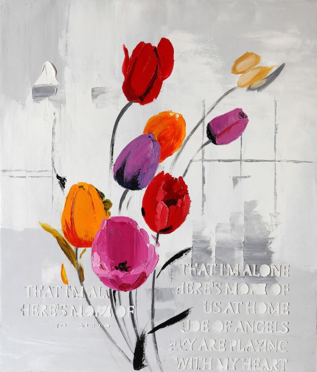 Купить и печать на заказ Картины на подрамнике Тюльпаны на сером фоне