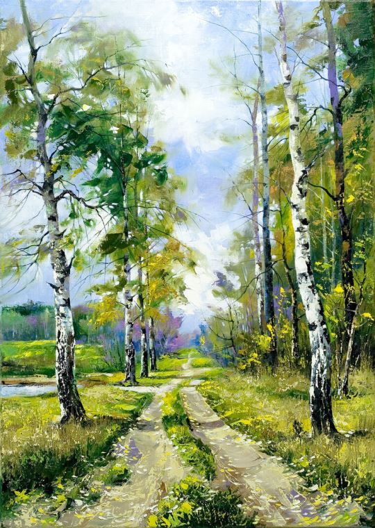Купить и печать на заказ Картины на подрамнике Пейзаж с березами